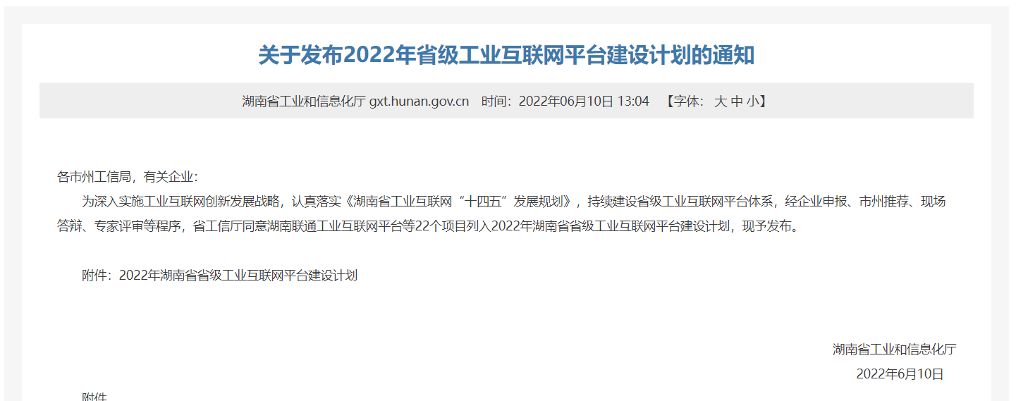 (图为《2022年湖南省省级工业互联网平台建设计划》)