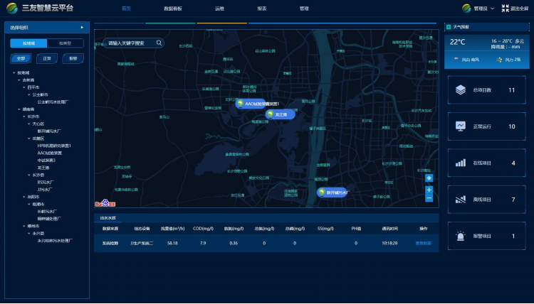 为深入贯彻习近平总书记对湖南重要讲话重要指示批示精神,落实工业互联网创新发展战略,持续推进全省工业互联网平台体系建设,着力打造国家重要先进制造业高地,三友环保聚焦水环境综合治理领域,打造污水处理智慧云管理平台,为污水处理提供数字化、网络化、智能化等智慧增效服务,推动智慧水务建设。