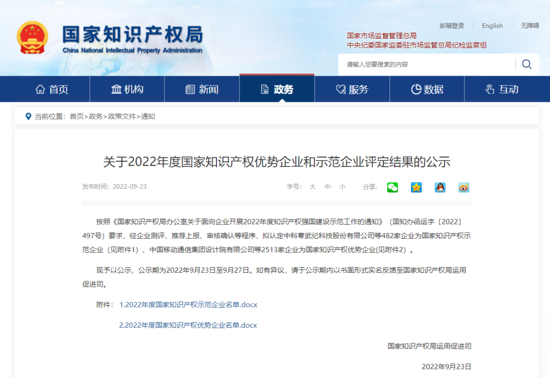 近日,国家知识产权局对“2022年度国家知识产权优势企业和示范企业”评定结果进行了公示。经企业测评、推荐上报、省市专家审核确认等严格筛选程序,三友环保凭借卓越的研发创新实力、健全的知识产权管理体系成功入选,被评为2022年度国家知识产权优势企业。
