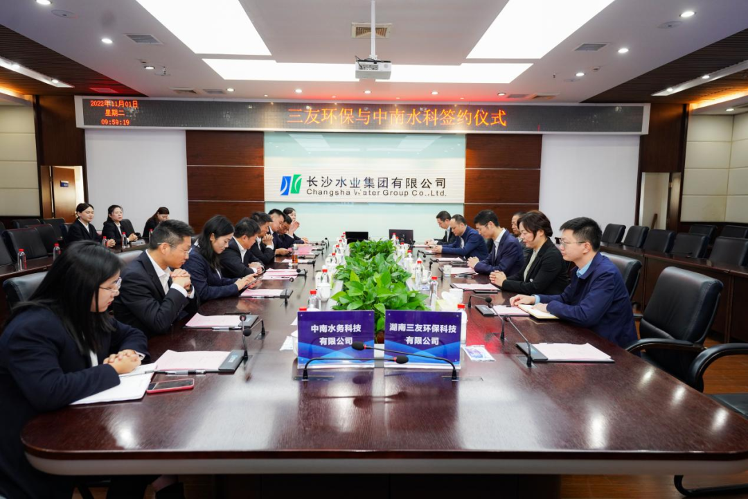 为进一步发挥各自优势、增进协作,引领水处理产业可持续发展,2022年11月1日上午10点,湖南三友环保科技有限公司(简称三友环保)与长沙水业集团下属一级全资子公司中南水务科技有限公司(简称中南水科)增资协议的签字仪式在长沙水业集团总部隆重举行。