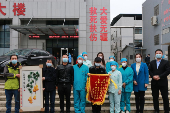 (图为三友环保及唐斌家人向医护人员表示感谢)