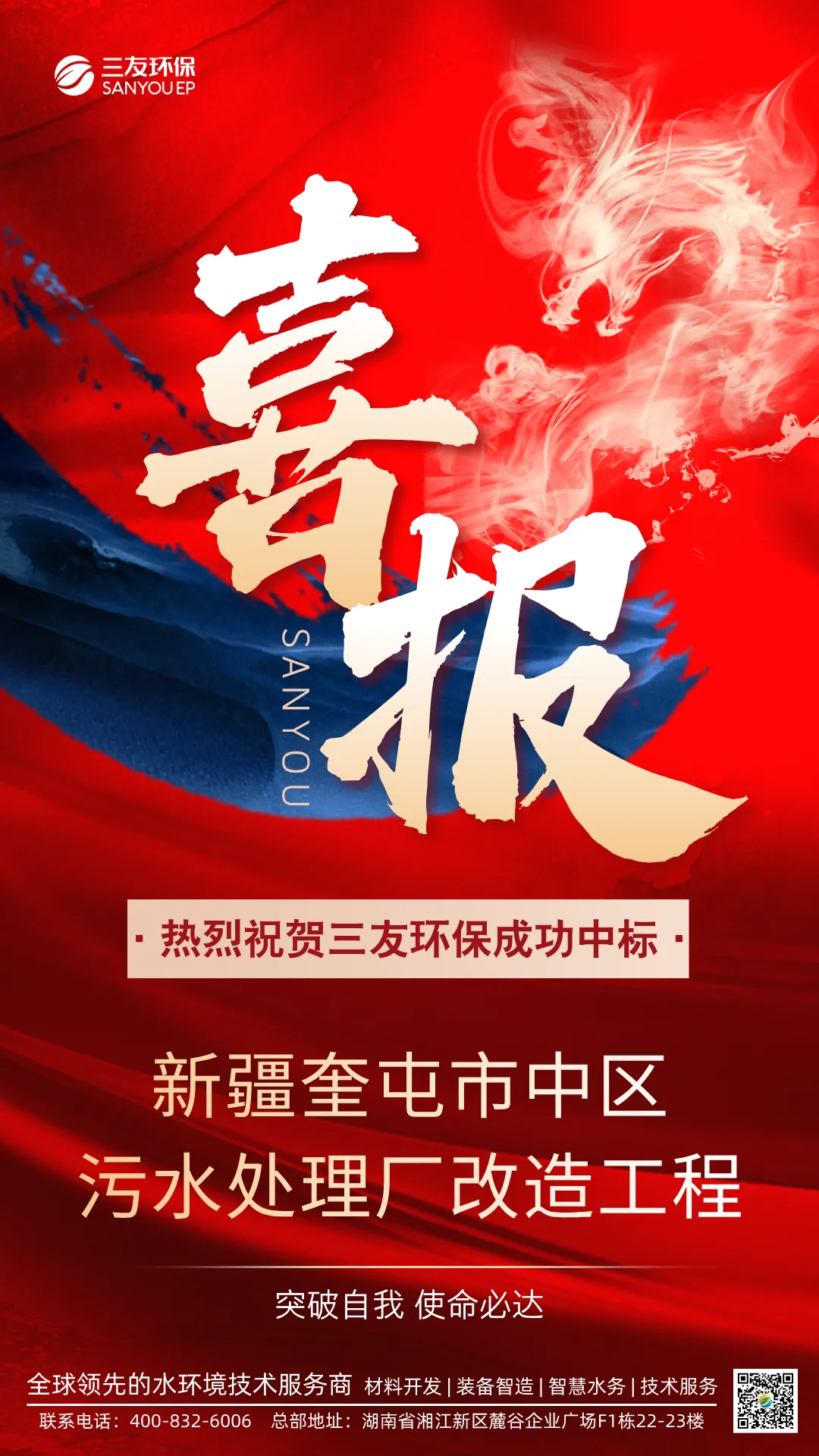 风劲潮涌正扬帆,市场营销捷报传。近日,三友环保凭借卓越的创新能力与雄厚的综合实力,成功中标新疆奎屯市中区污水处理厂改造工程。这一重大成果不仅是市场对三友环保专业能力的高度认可,更标志着公司在污水处理领域的版图进一步拓展,为区域生态环境改善注入新动能。