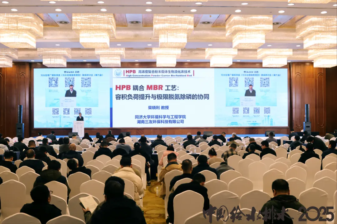 在主题报告中,同济大学环境科学与工程学院教授、博士生导师柴晓利发表了题为《HPB 耦合 MBR 工艺:容积负荷提升与极限脱氮除磷的协同》的主题演讲,引发与会者广泛关注。在演讲中,柴晓利教授详细阐述了HPB技术与MBR工艺的各自优势,并以深圳坂雪岗水质净化厂二期中试项目为例,生动诠释了HPB耦合MBR工艺的卓越性能。他指出,HPB技术耦合MBR工艺不仅可以实现容积负荷提升,生化段HRT减少一半,强化脱氮除磷效率,出水可稳定达到准IV标准,还无需投加碳源及除磷药剂,降低运行成本,可有效抑制膜污染,让膜在线反洗频率由1次/周降低为1次/4周。据了解,三友环保HPB技术采用“基于微米级载体的复合生物反应器”技术思路,首创微米级载体和载体回收系统,不仅首次构建了基于微米级复合载体的附着污泥与悬浮污泥共生的双污泥系统,提高了容积负荷,还基于低密度差低粒径比微米级污泥颗粒的有效分离系统,实现了双泥龄,优化了生化单元的微生物群落结构, 强化了脱氮除磷效率,强化了泥膜两相微生物协同作用机制,好氧异养菌、厌氧氨氧化菌等脱氮微生物丰度显著提升,脱氮效率提升1.6倍以上。而MBR(膜生物反应器)技术将膜分离与生物处理技术有机结合,具有占地面积小、出水水质标准高、污泥产率低等优势,但同时,投资成本高、膜污染、能耗及药耗高的问题也依然突出。当HPB技术与MBR工艺耦合,可促使两者优势互补,强化MBR系统脱氮能力,减少碳源投加量,提高MBR系统除磷能力,减少除磷剂投加量,进一步实现MBR工艺污水处理厂原位提标扩容及减污降碳协同增效。 HPB技术与MBR工艺耦合打破了行业内对传统工艺的固有思维模式,为污水处理领域提供了新的思路与发展方向。作为全球领先的水环境技术服务商,三友环保将继续挖掘HPB技术与其他污水处理工艺耦合的潜力,推动技术在污水处理全流程中实现更大规模的创新应用,助力我国污水处理事业迈向新高度。