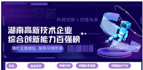 创新是催生经济增长新动能、提升经济增长质量的根本性因素。近年来,湖南省始终坚持把科技创新摆在经济社会发展全局核心位置,以创新驱动发展,书写“强省会”战略的精彩答卷。在这片高新企业云集、创新技术蓬勃发展的热土之上,“湖南高新技术企业综合创新能力百强”不仅是湖南省打造科技创新高地的中坚力量,也是推动湖南省高质量发展的开路先锋。