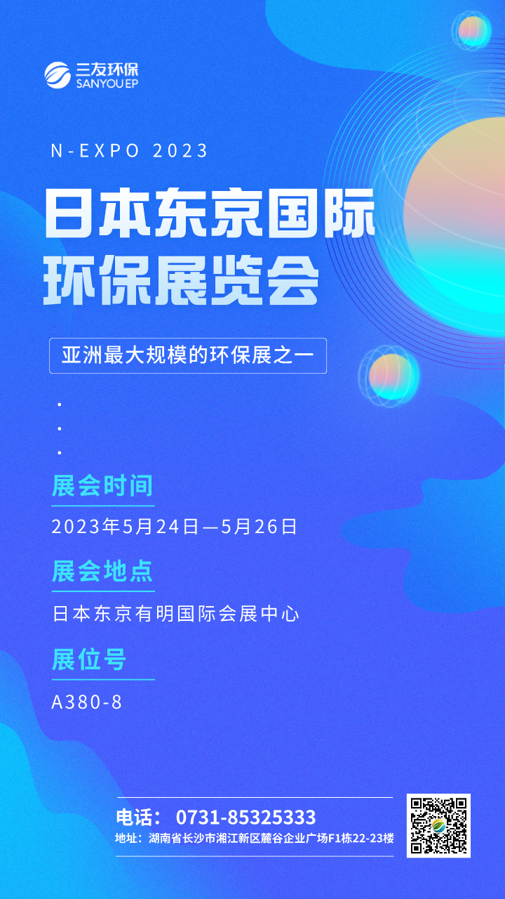 5月24日—5月26日,2023日本东京国际环保展览会N-EXPO将在日本东京有明国际会展中心举行,汇集全球上千家环保企业,展示废物回收利用、水处理、生物能、生态保护等产业全领域的前沿科技成果。应湖南省贸促会国际交流中心邀请,三友环保将在本次展会上精彩亮相,展现来自中国的水处理科技力量。