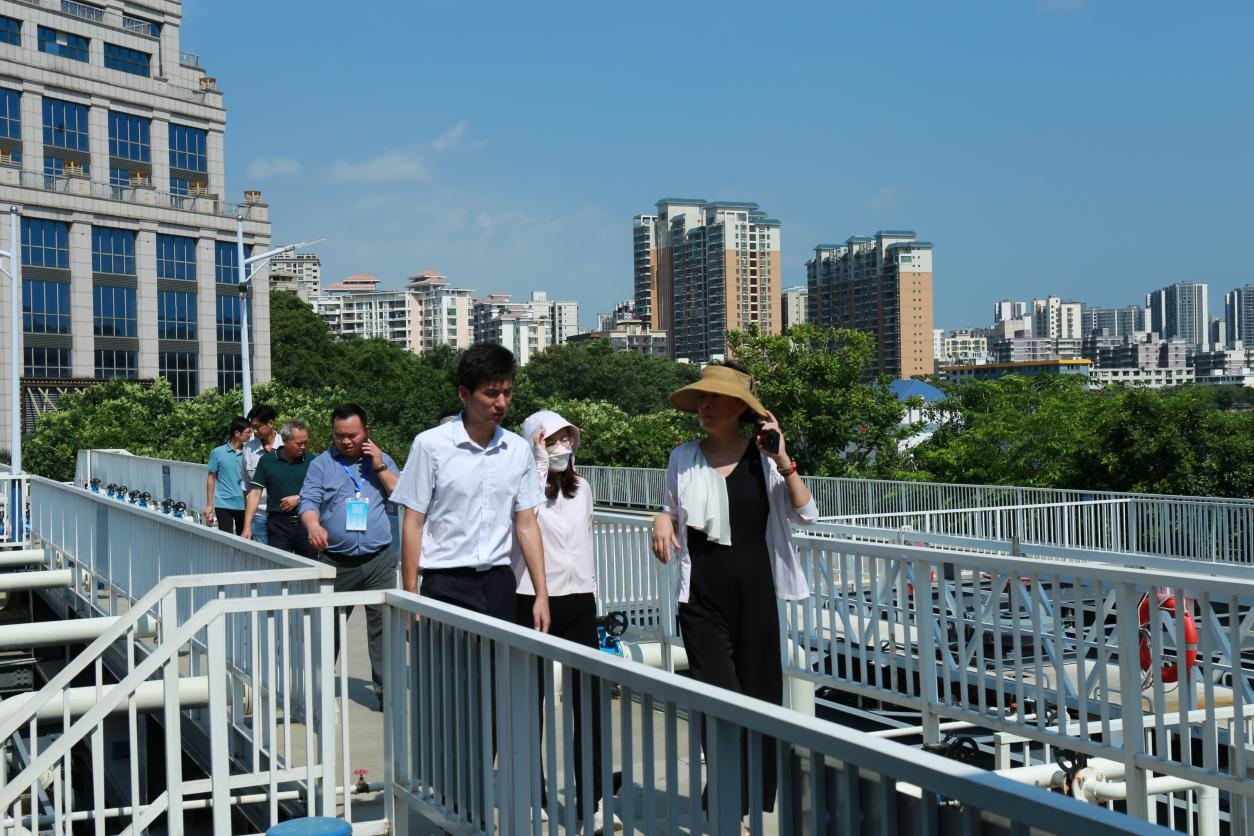 (图为考察团参观海口市西崩潭水质净化中心)