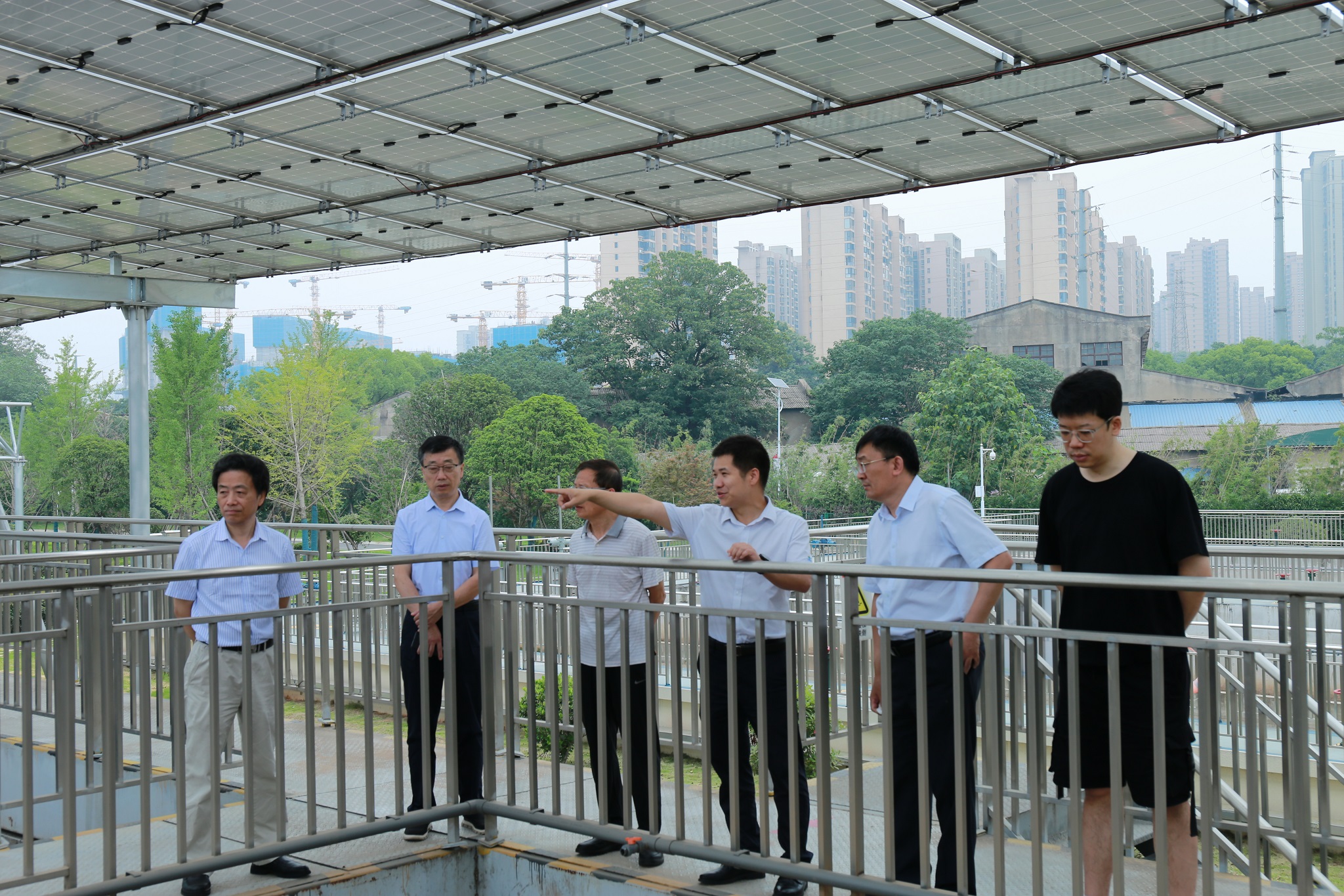 (图为中国水协及专家组一行考察新开铺污水净化厂)