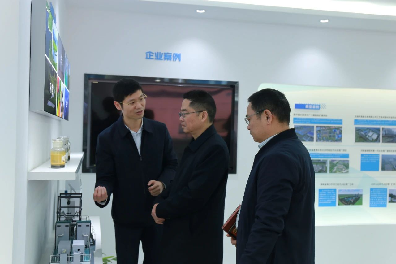 在三友环保公司总部,调研组一行走进公司企业文化展厅、数字化区域智慧中心、研发试验中心进行实地参观,与企业负责人、工会负责人进行深入交流,详细了解公司的企业生产经营状况、职工队伍情况,以及企业产品研发应用情况。作为全国领先的水环境综合治理服务商,三友环保深耕污水处理领域,一方面不断延伸和纵深在水处理产业全场景的布局,完善产业链,深化构建“智慧水务-技术服务-装备智造-材料研制”综合服务能力;另一方面,以产品研发与专业技术能力为引擎,与中国工程院院士、清华大学教授、清华大学学术委员会副主任孙家广院士及其创新研发团队共建院士工作站,并搭建7大国家级、省级、市级科技创新和研究平台,以创新基因汇聚发展“硬核”力量,自主研发一系列产品与技术。历经7年多的发展,三友环保自主创新研发的HPB技术已经包括彭永臻、徐祖信、俞汉青等三位院士在内的多位专家鉴定,一致鉴定为整体达到国际领先水平,智慧水务系统也已成为破解水务行业共性问题,引领企业及行业数字化转型的新路径。调研组一行对三友环保多年来所积累的技术优势、团队优势及拓展市场的能力等给予了高度评价,并鼓励企业坚定信心、厚积薄发、乘势而上,进一步发挥技术领先优势,为环保这一朝阳产业贡献力量。