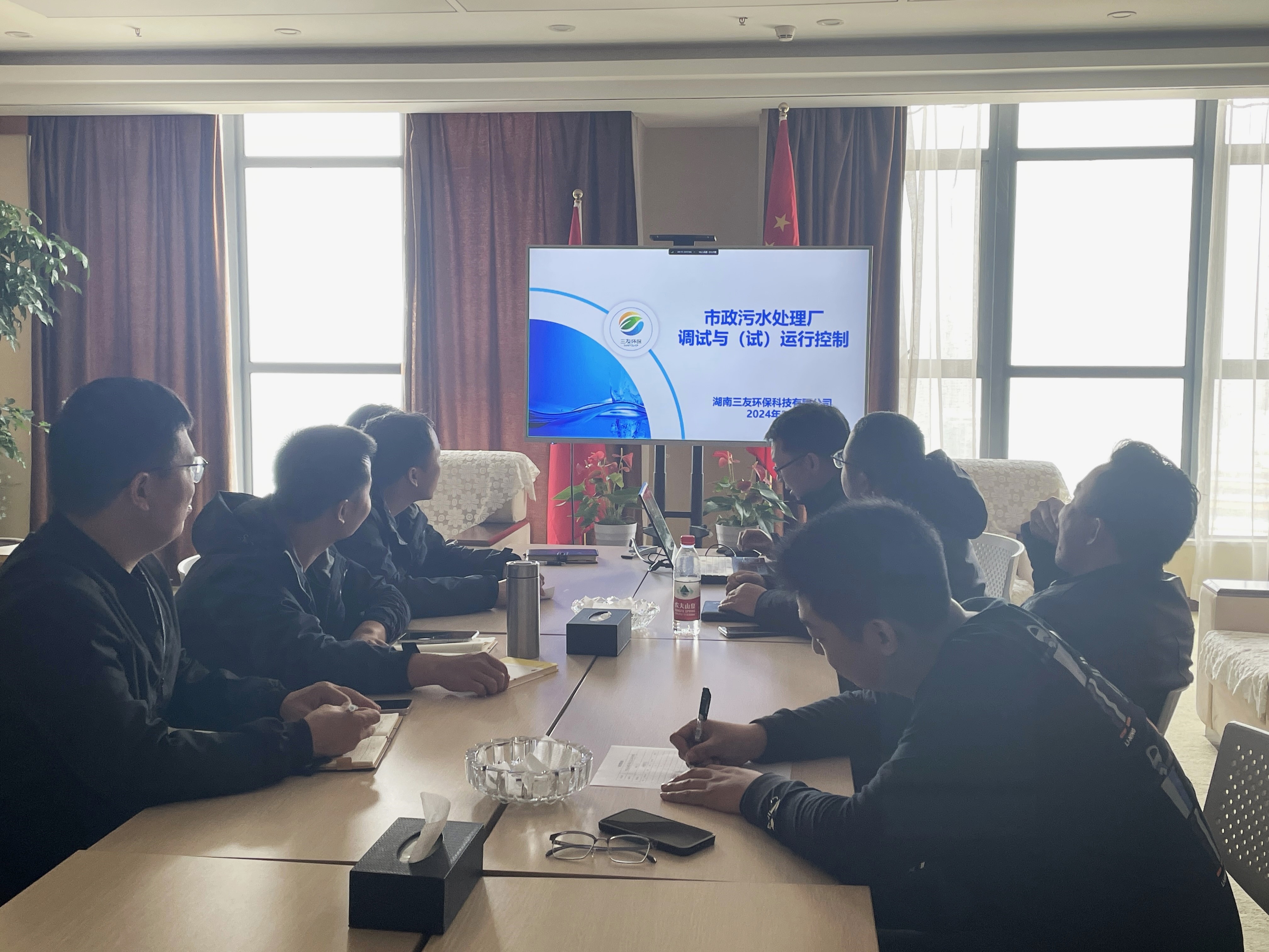 为鼓舞士气、提振信心,2024年2月19日,三友环保召开项目运营中心开年动员暨业务培训会议,吹响一线人员开年即开跑、开局即冲刺的“集结号”。三友环保副总经理杨博智、项目管理部总监彭可等项目管理部、运营管理部近40人参加会议。