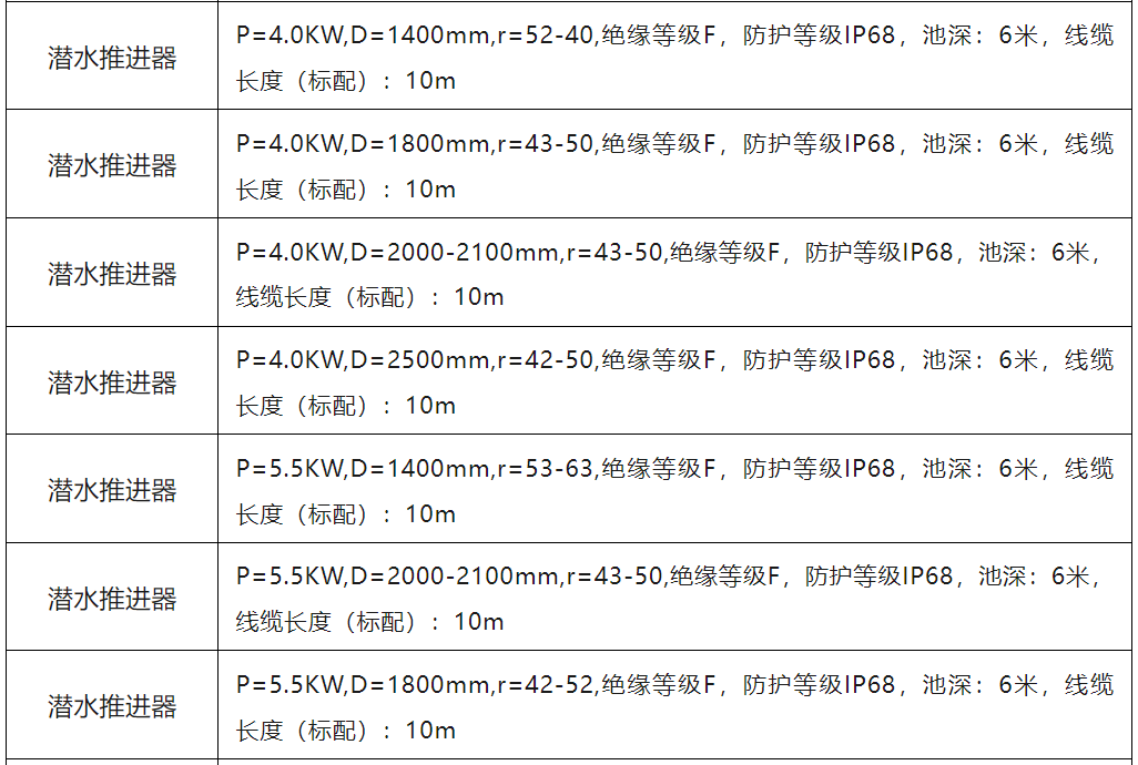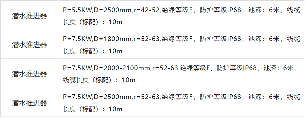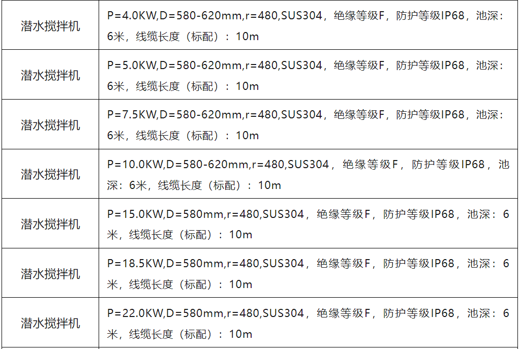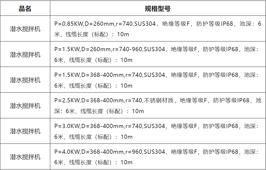 2、质量标准:满足现行的《泵试验污水和类似应用的潜水搅拌器 》(GB/T 39986-2021)、《潜水推流式搅拌机》(GB/T 33566-2017)、《污水处理用潜水推流式搅拌机能效限定值及能效等级》(GB37485-2019)、《潜水搅拌机》(CJ/T 109-2007)、《推流式潜水搅拌机》(HJ/T 279-2006)等制造、检测、鉴定标准。