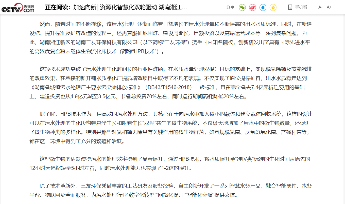 然而,随着时间的不断推移,该污水处理厂逐渐面临着日益增长的污水处理量和不断提高的出水水质标准,同时,在新建设施、提升标准及扩容改造的过程中,还需克服征地困难、建设周期长、巨额投资以及高昂运营成本等一系列复杂问题。为此,湖南湘江新区的湖南三友环保科技有限公司(以下简称“三友环保”)携手国内知名院校,创新研发出了具有国际先进水平的高浓度复合粉末载体生物流化床技术(简称“HPB技术”)。