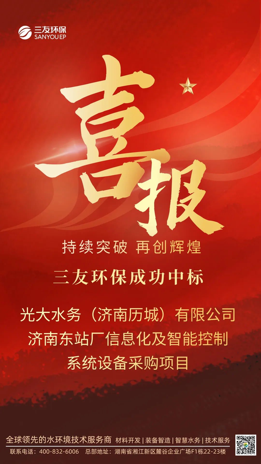 近日,三友环保智慧水务版块传来喜讯,成功中标光大水务(济南历城)有限公司济南东站厂信息化及智能控制系统设备采购项目。