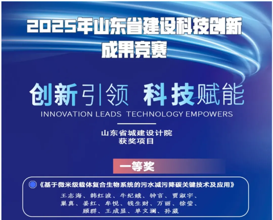 近期,山东省住房和城乡建设厅发布了关于2025年度“山东省建设科技创新成果竞赛”优胜成果的通知,由三友环保联合山东省城建设计院、中国科学院青岛生物能源与过程研究所、山东省城建安装工程有限公司共同研发的《基于微米级载体复合生物系统的污水减污降碳关键技术及应用》项目从激烈的竞争中脱颖而出,荣获一等奖。