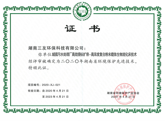 2023年10月28日,由中国环境科学学会组织,由湖南三友环保科技有限公司和同济大学共同完成的“高浓度复合粉末载体生物流化床技术及其应用研究”成果鉴定会在长沙召开,经鉴定委员专家一致鉴定,该成果整体达到国际领先水平。