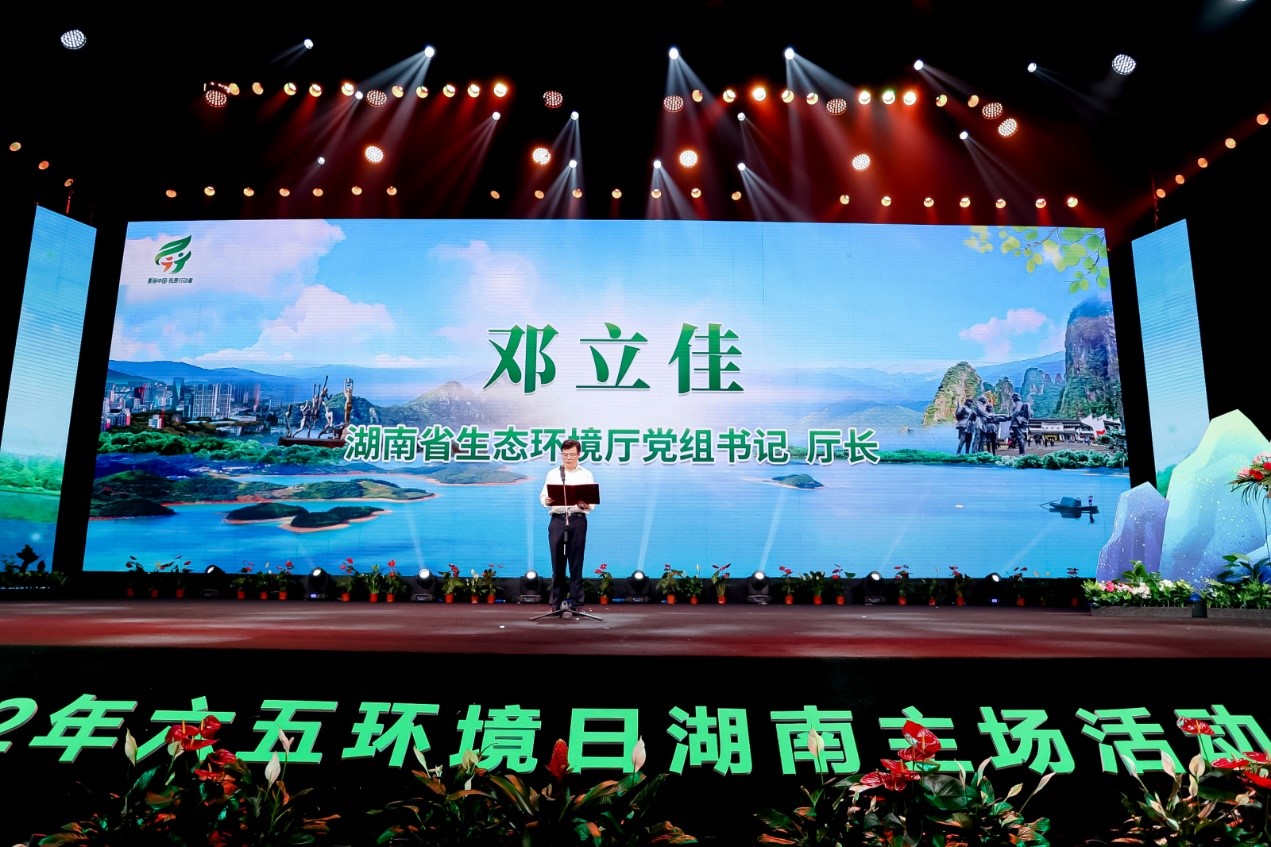 (图为湖南省生态环境厅党组书记、厅长邓立佳作主旨演讲)