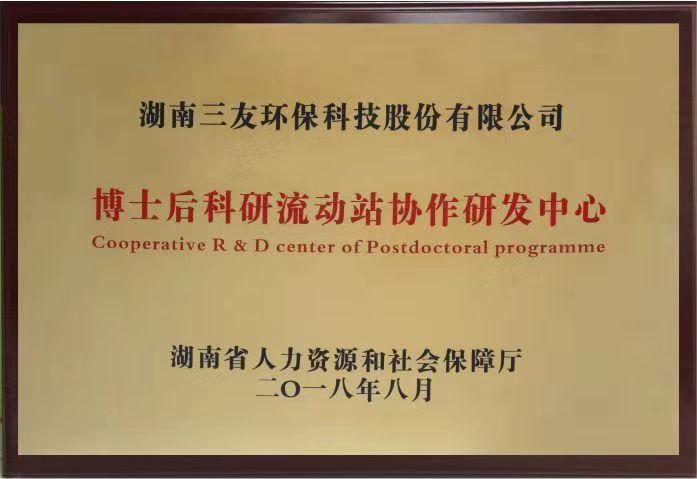 湖南省城镇水体污染控制工程技术研究中心、湖南省水处理数字化工程技术研究中心、湖南省流域水体生态修复技术工程研究中心、湖南省企业技术中心、湖南省工业互联网平台、博士后科研流动站协作研发中心、长沙市专家工作站创新研发中心